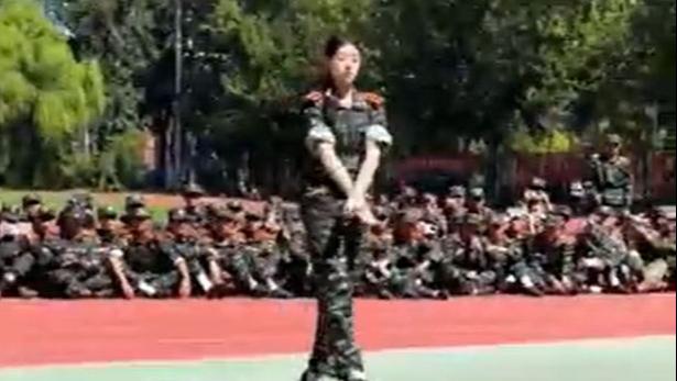 A freshman at Beijing Sport University showcased Chinese dance during military training中国青年报客户端2025-09-14 17:54:28