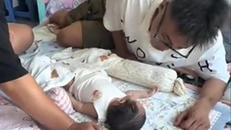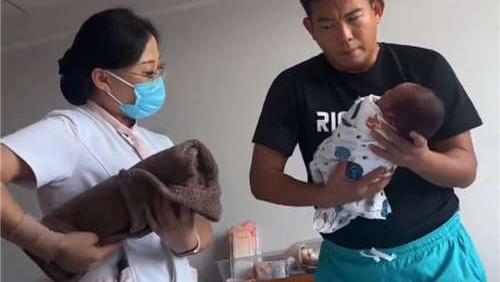 A baby is being tenderly cared for, with eyes half-closed and a look of pure sleepiness that's utterly cute.中国青年报客户端2025-09-02 15:37:18