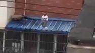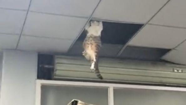 A kitten climbed onto the ceiling, stuck and doing "pull-ups" to stay, people tried to rescue it中国青年报客户端2025-09-16 17:10:54