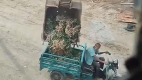 An elderly farmer’s peanut harvest was quickly loaded with the help of machine中国青年报客户端2025-09-18 16:58:33