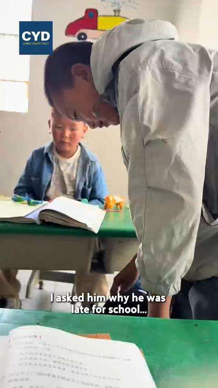 In a classroom, a young boy surprised his teacher with flowers这是我在中国青年报APP看到的,推荐给你们 中国青年报客户端2025-09-24 15:46:06